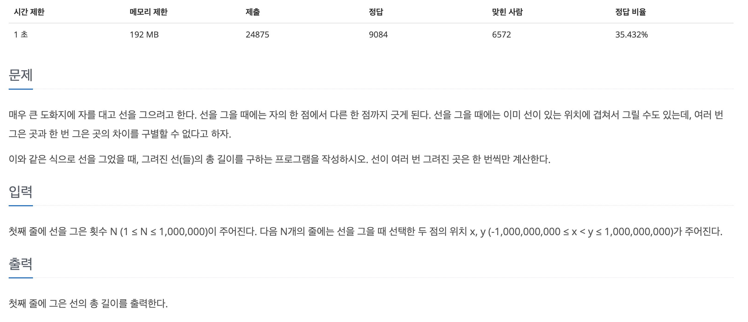 오늘은 백준 알고리즘 2170번 - 선 긋기를 풀어보도록 하겠습니다.